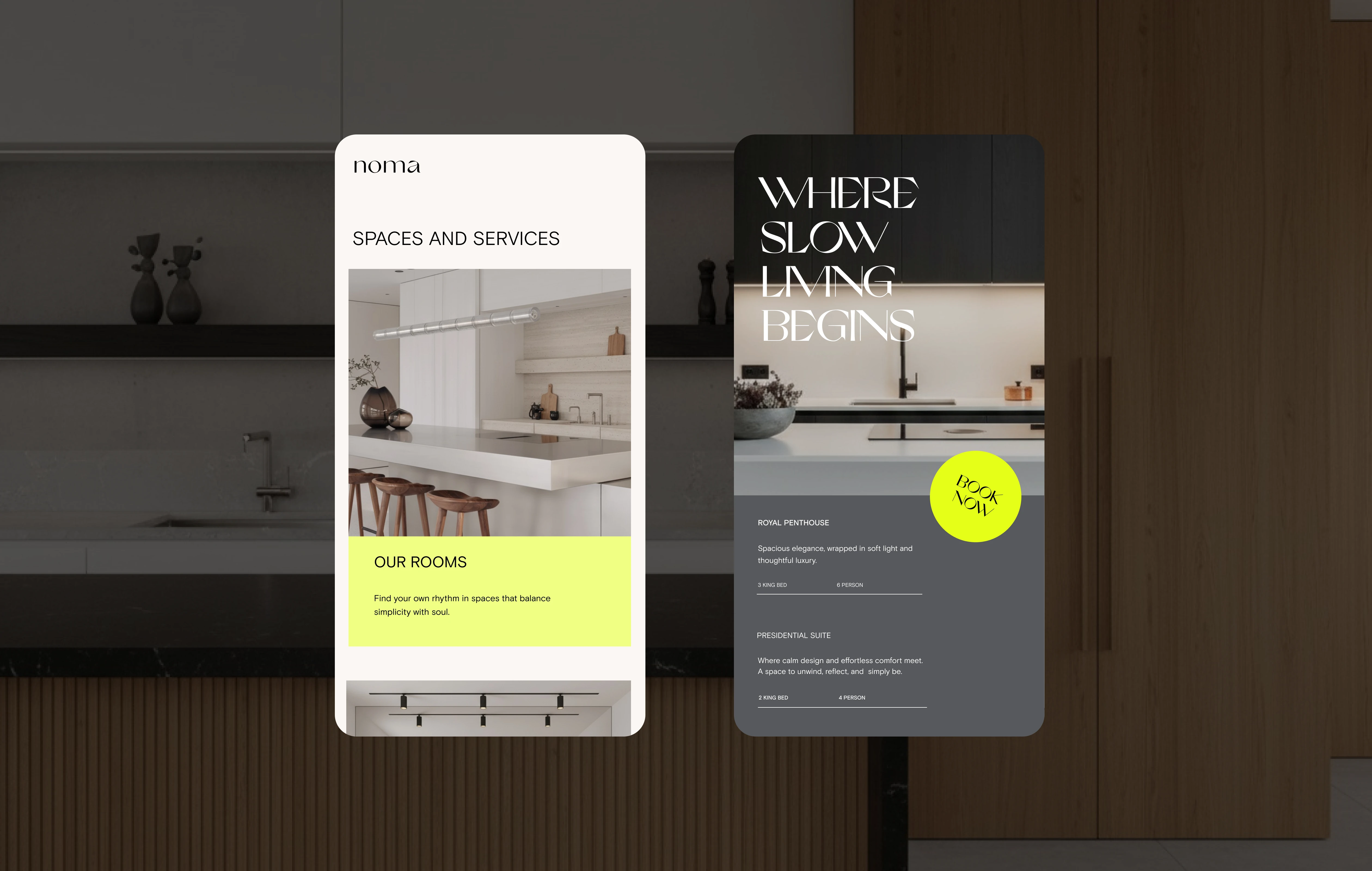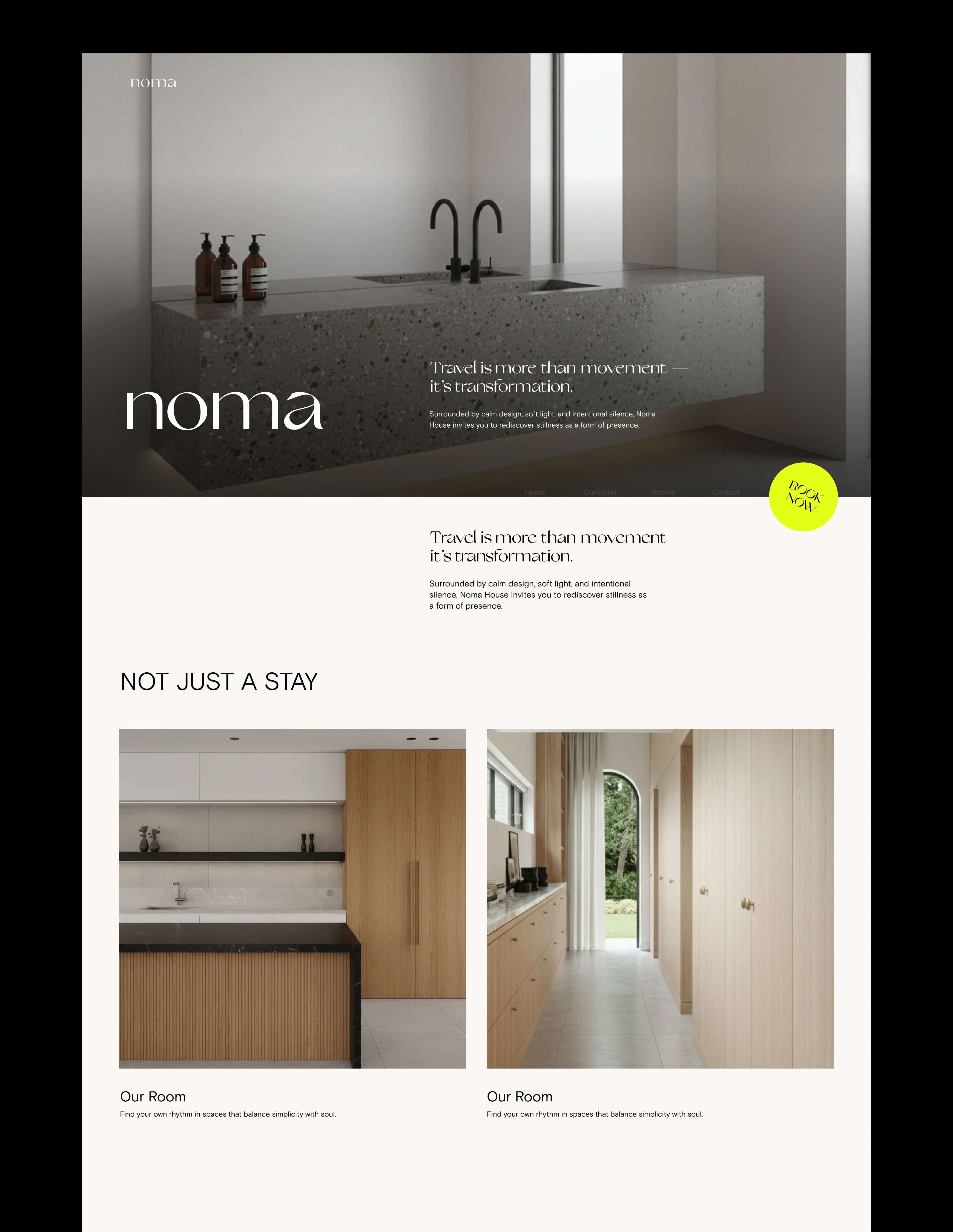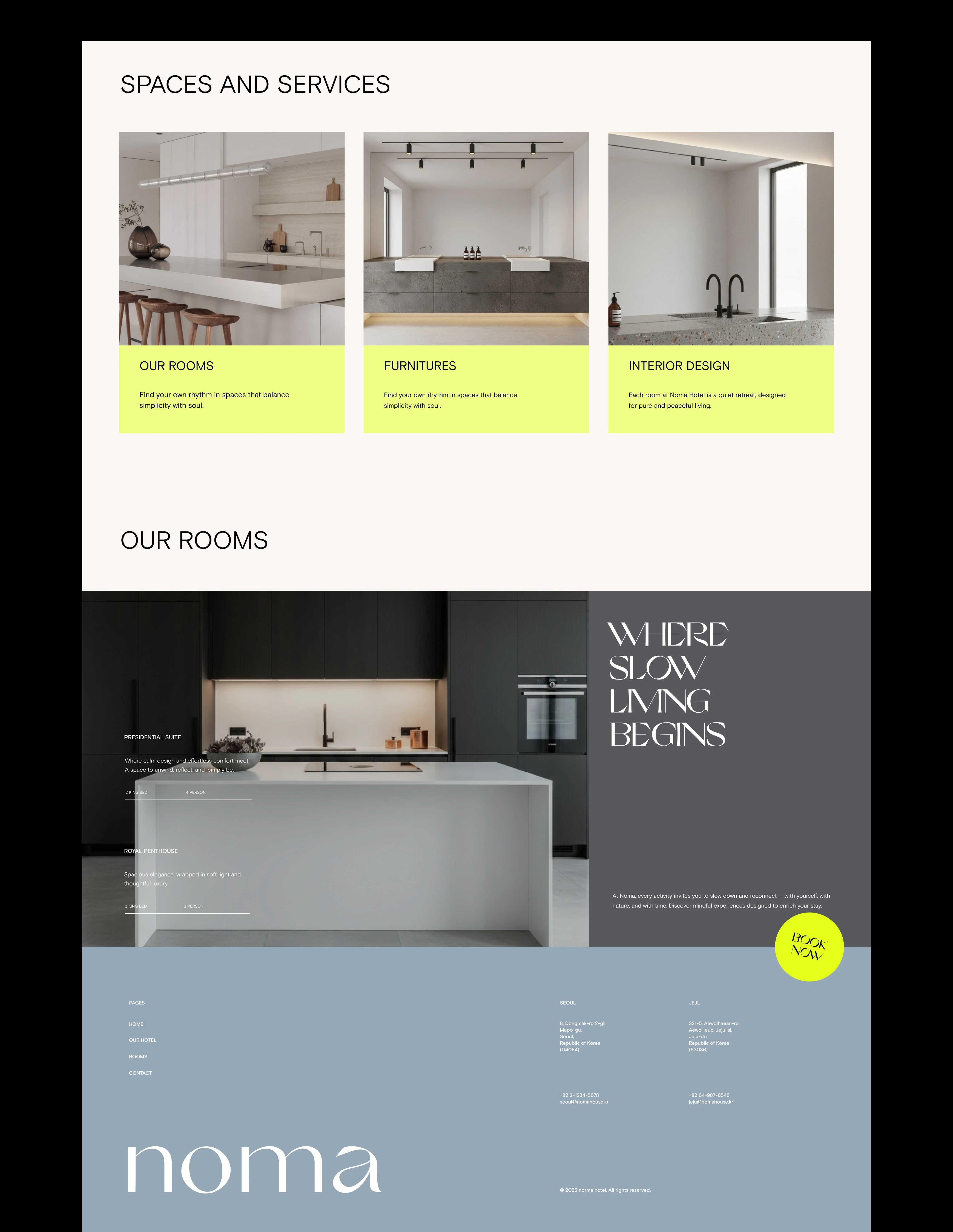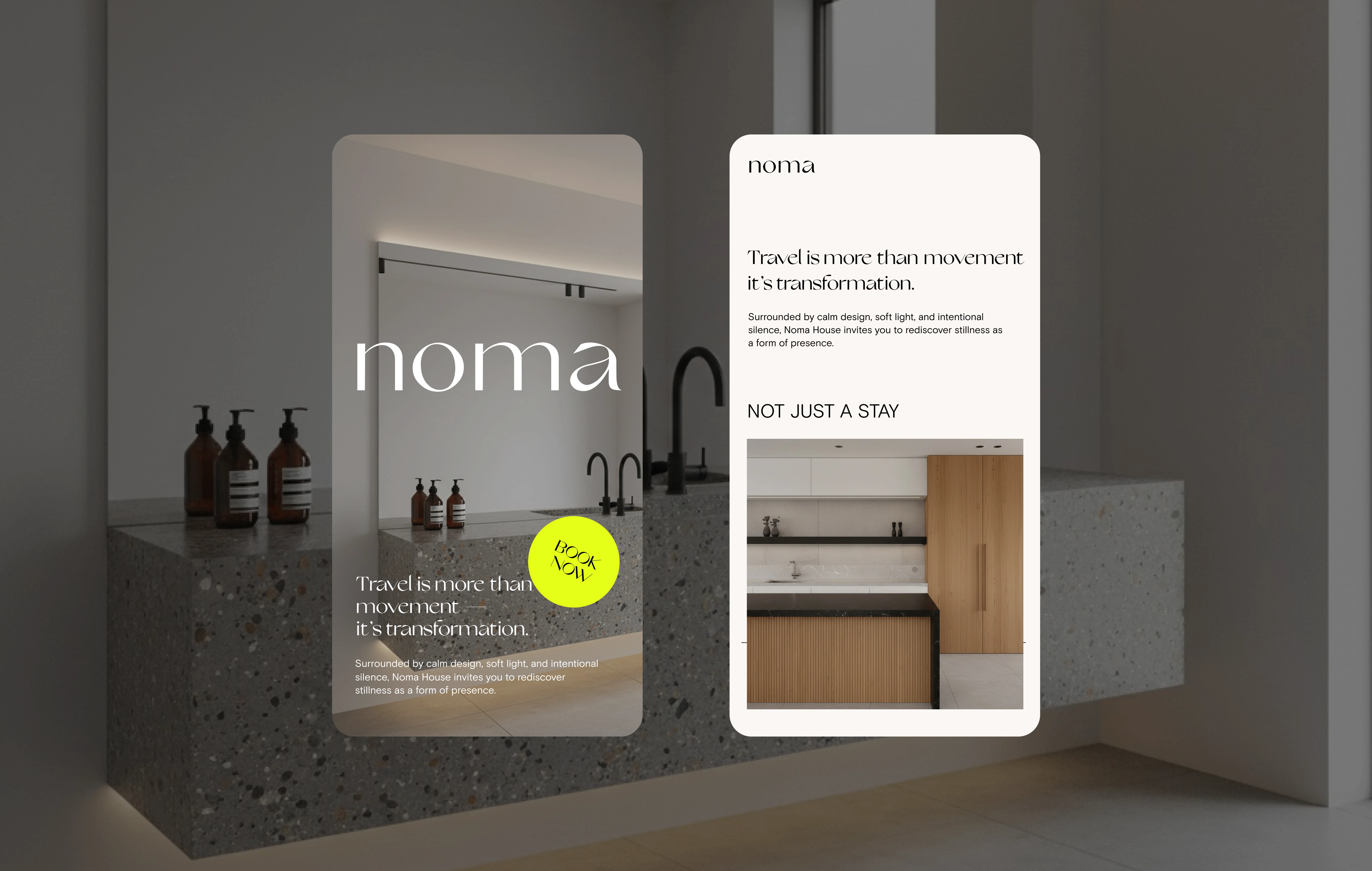 정적인 쉼의 미학을 담은 노마호텔의 디지털 브랜딩. ‘멈춤과 존재, 나 자신으로의 회귀’라는 철학을 바탕으로, 절제된 톤과 감성적인 이미지로 노마 호텔의 느린 삶의 리듬을 담은 디지털 프로덕트.