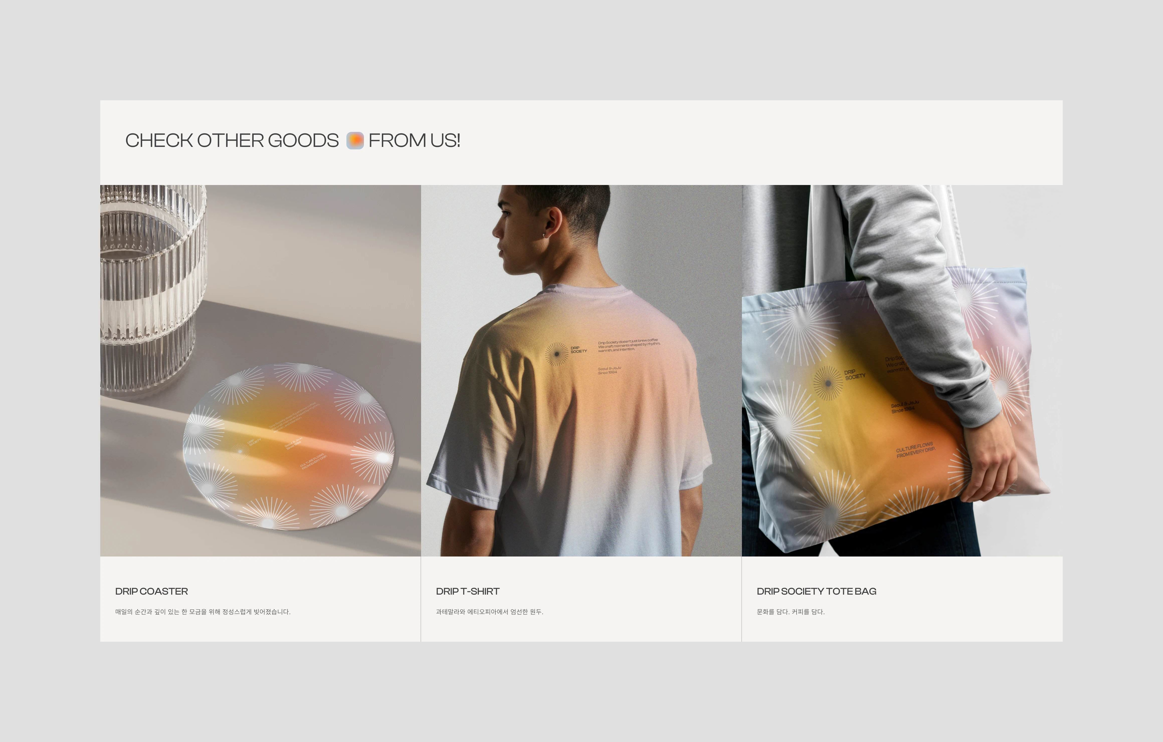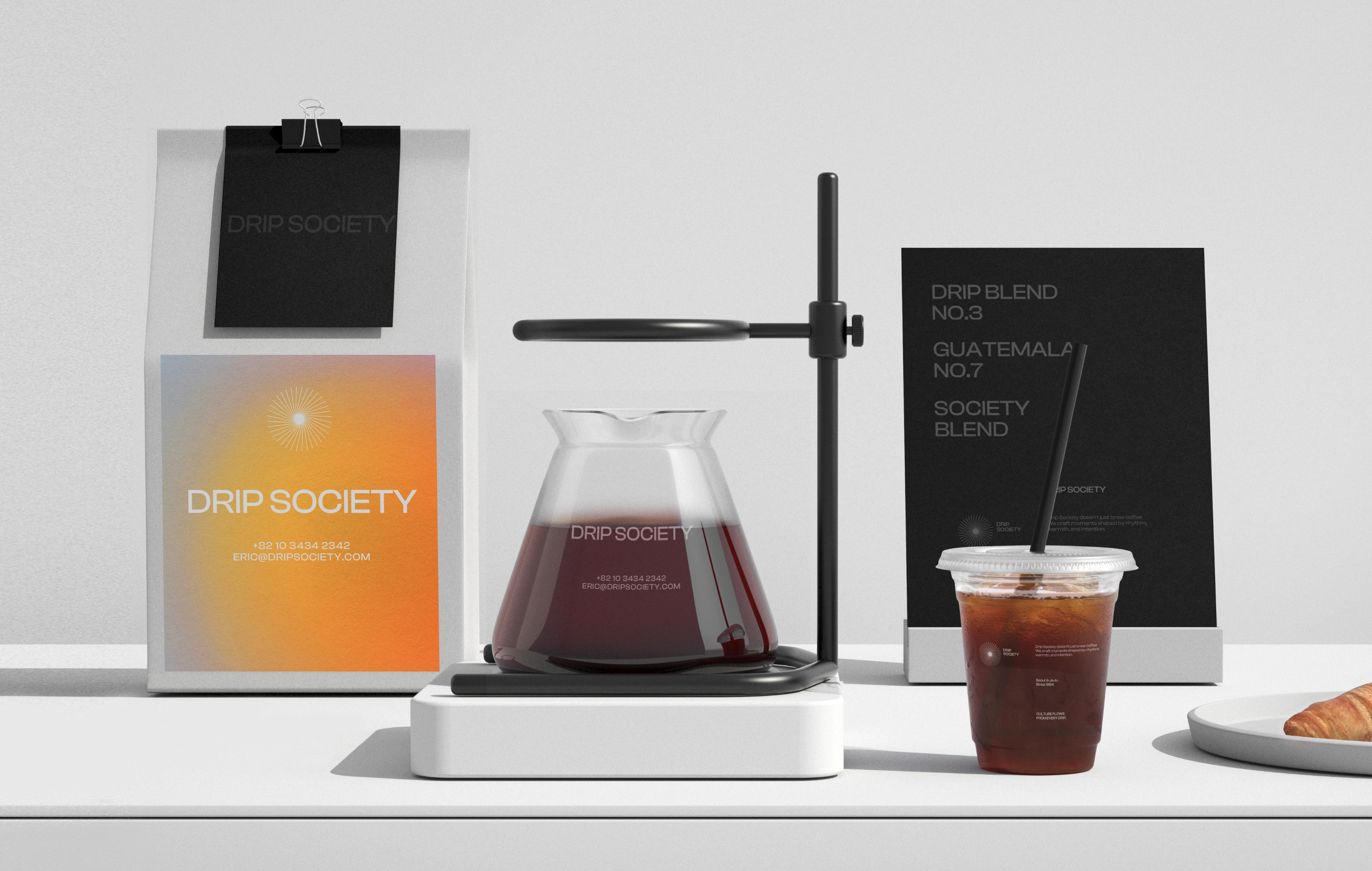 A clean, modern design language that reflects the rich aroma and curated character of Drip Society’s coffee. Visual storytelling through form and color.