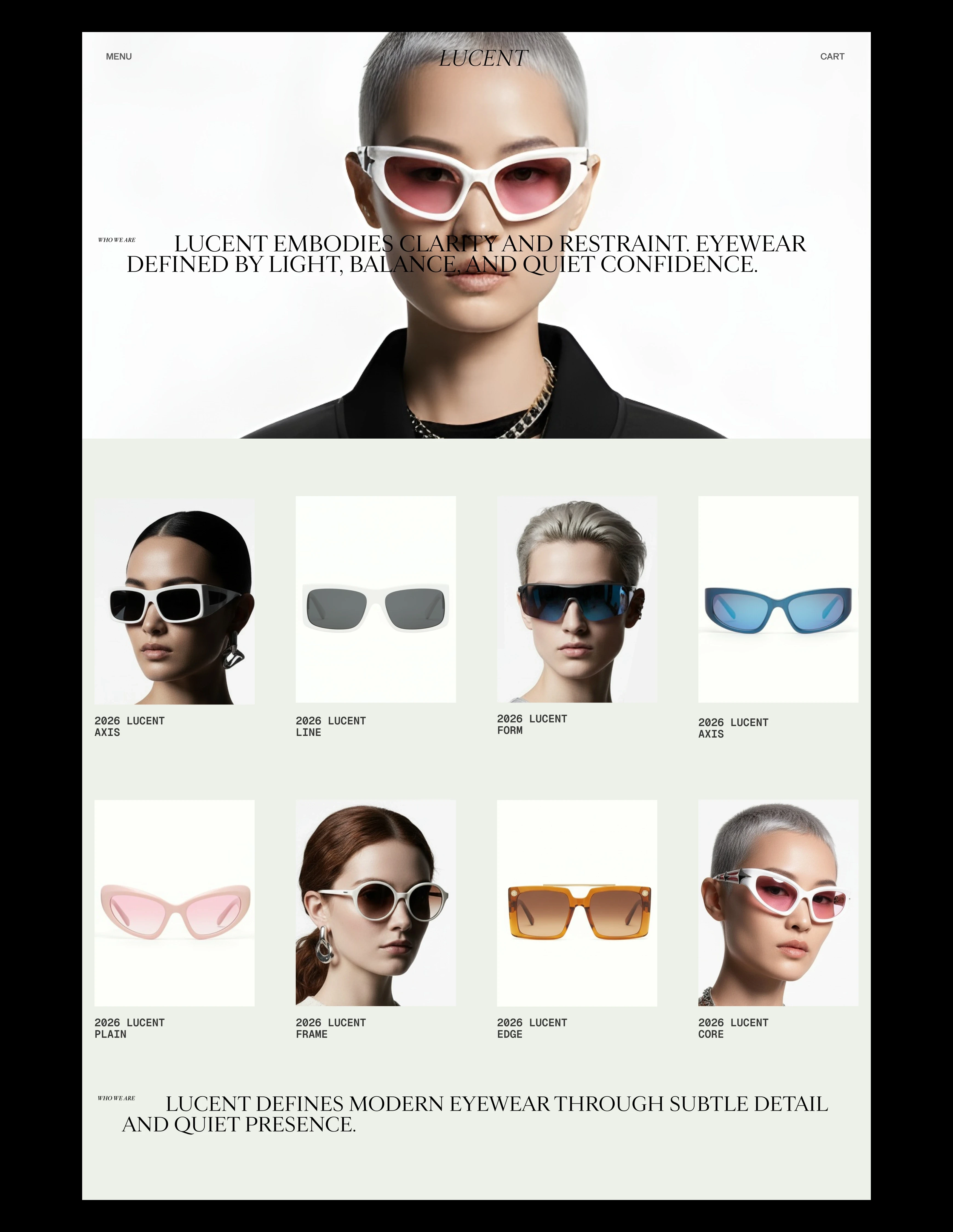 We led the branding and website design for Lucent, shaping a clear and restrained visual identity that reflects the brand’s philosophy of precision, balance, and timeless eyewear design.