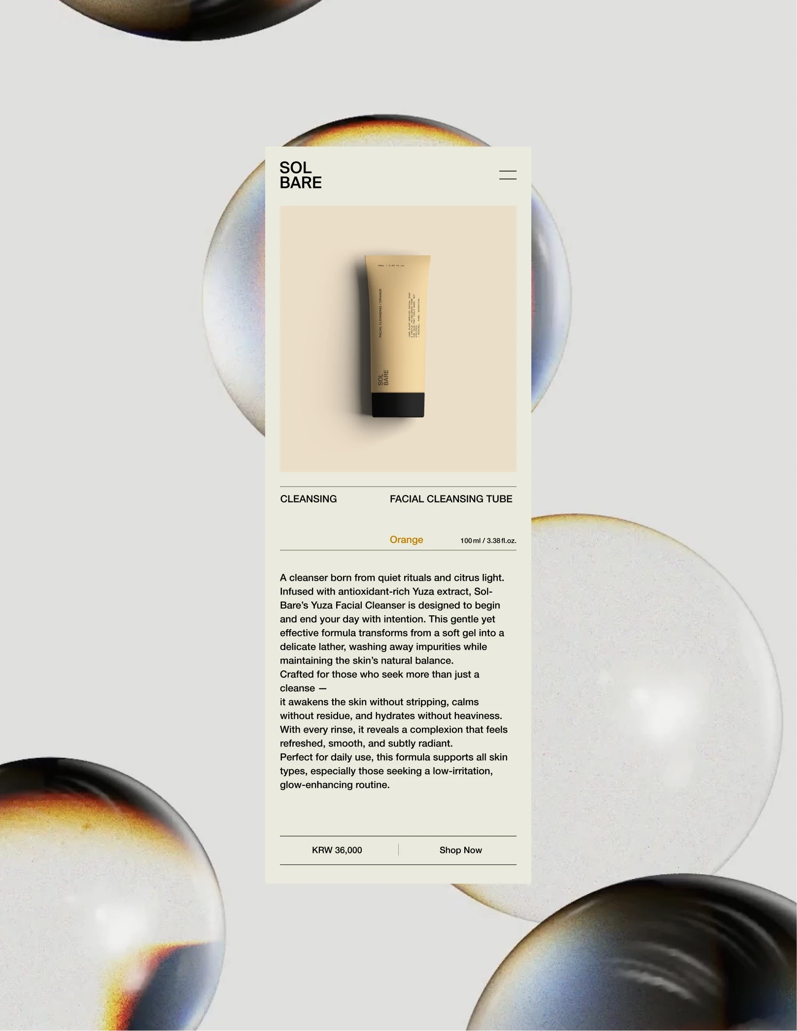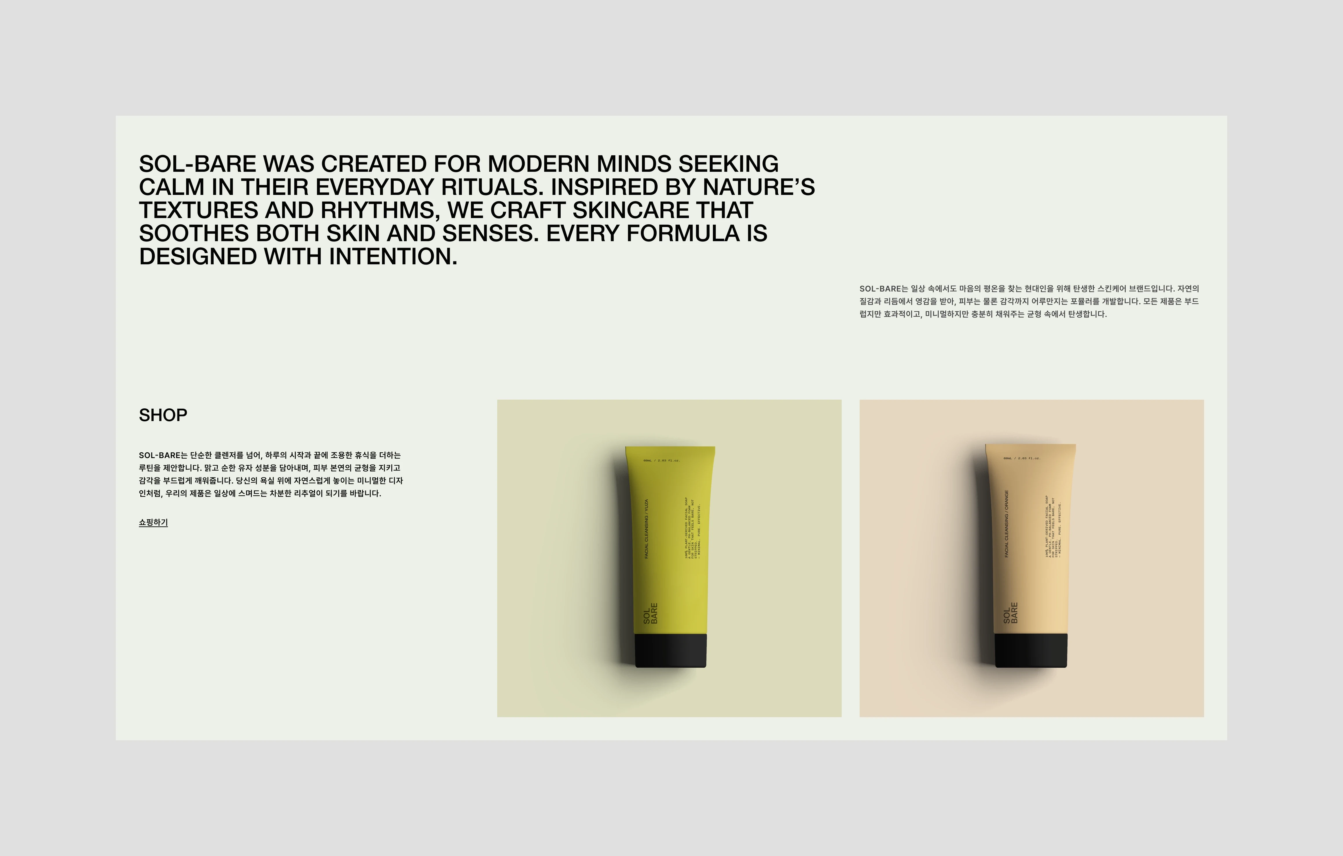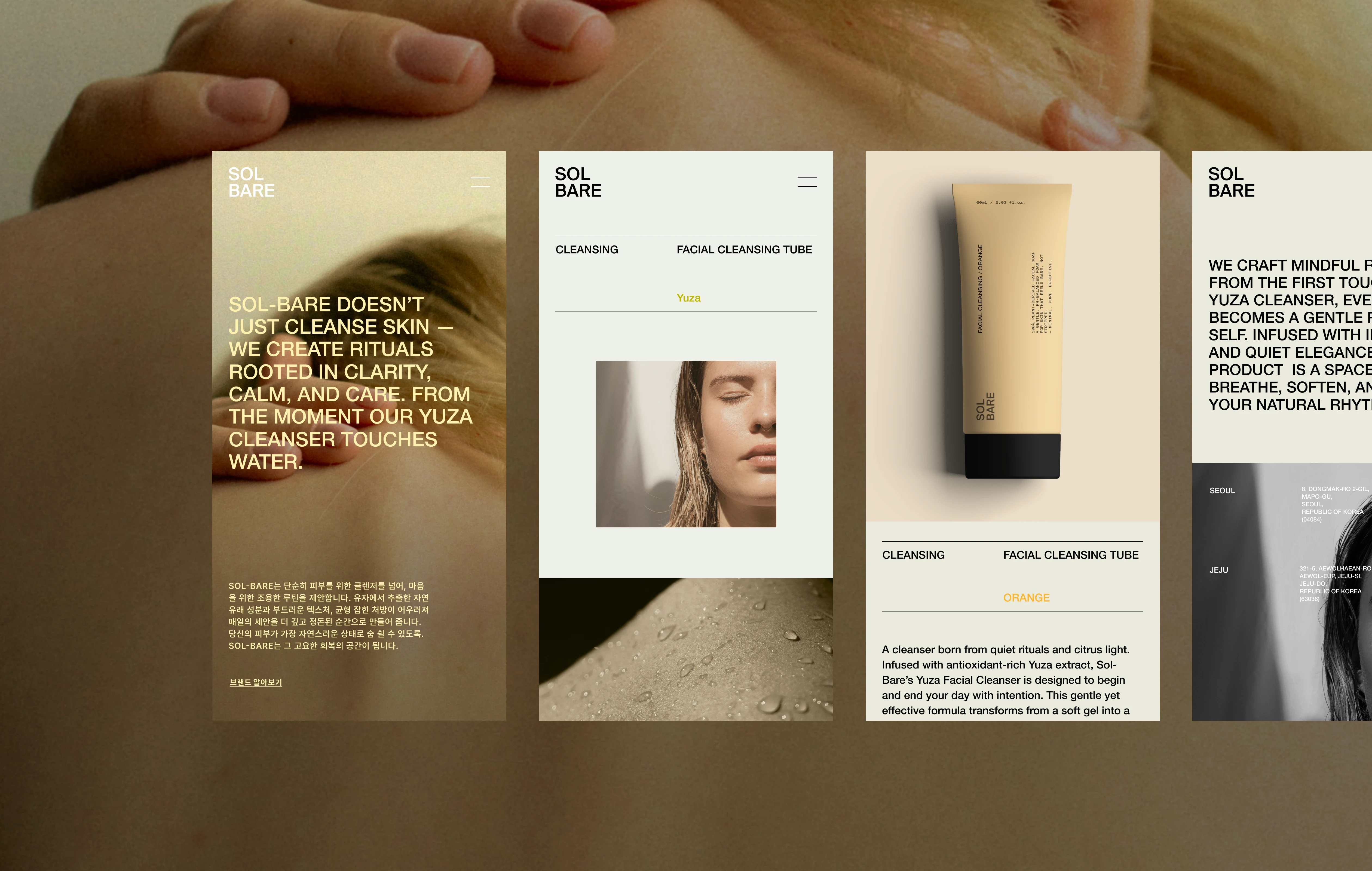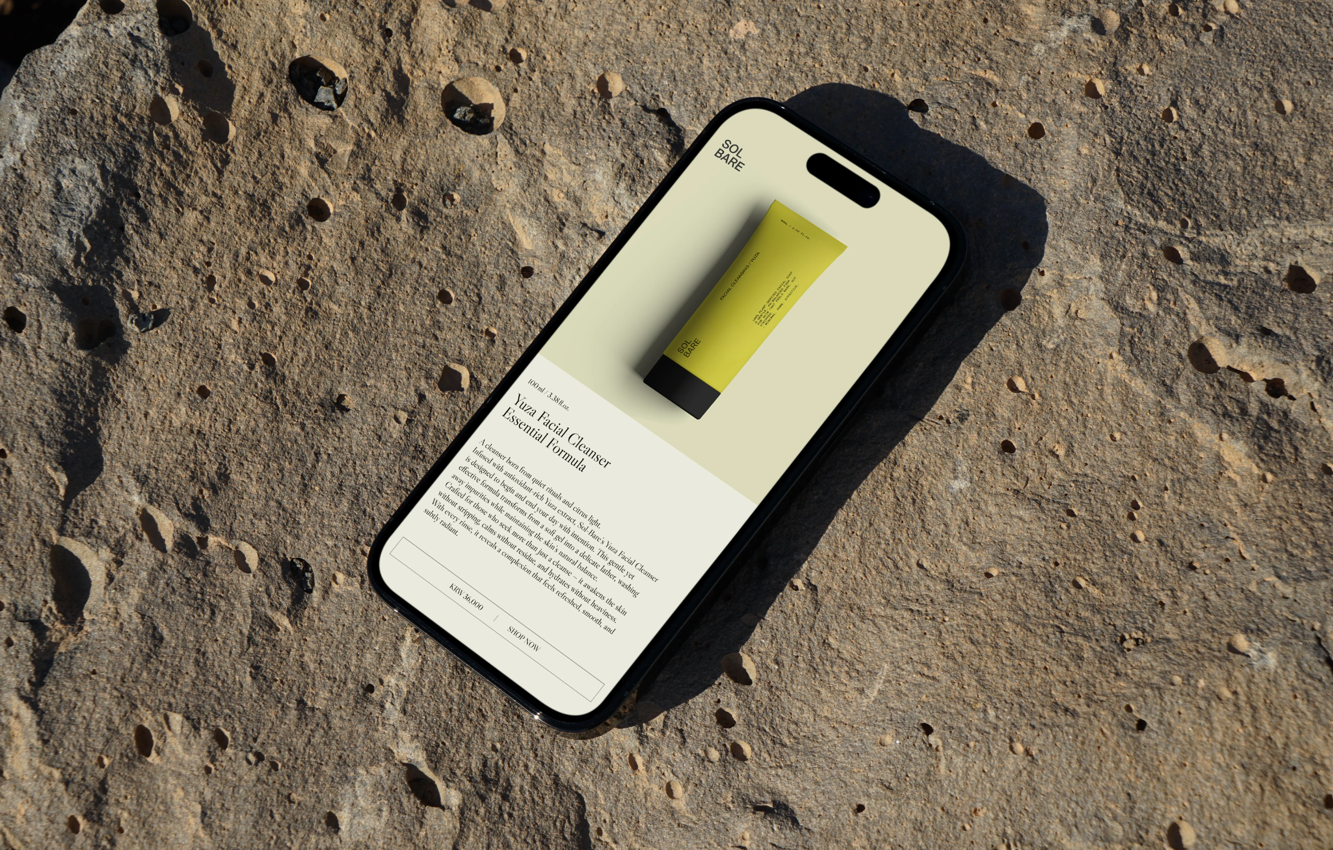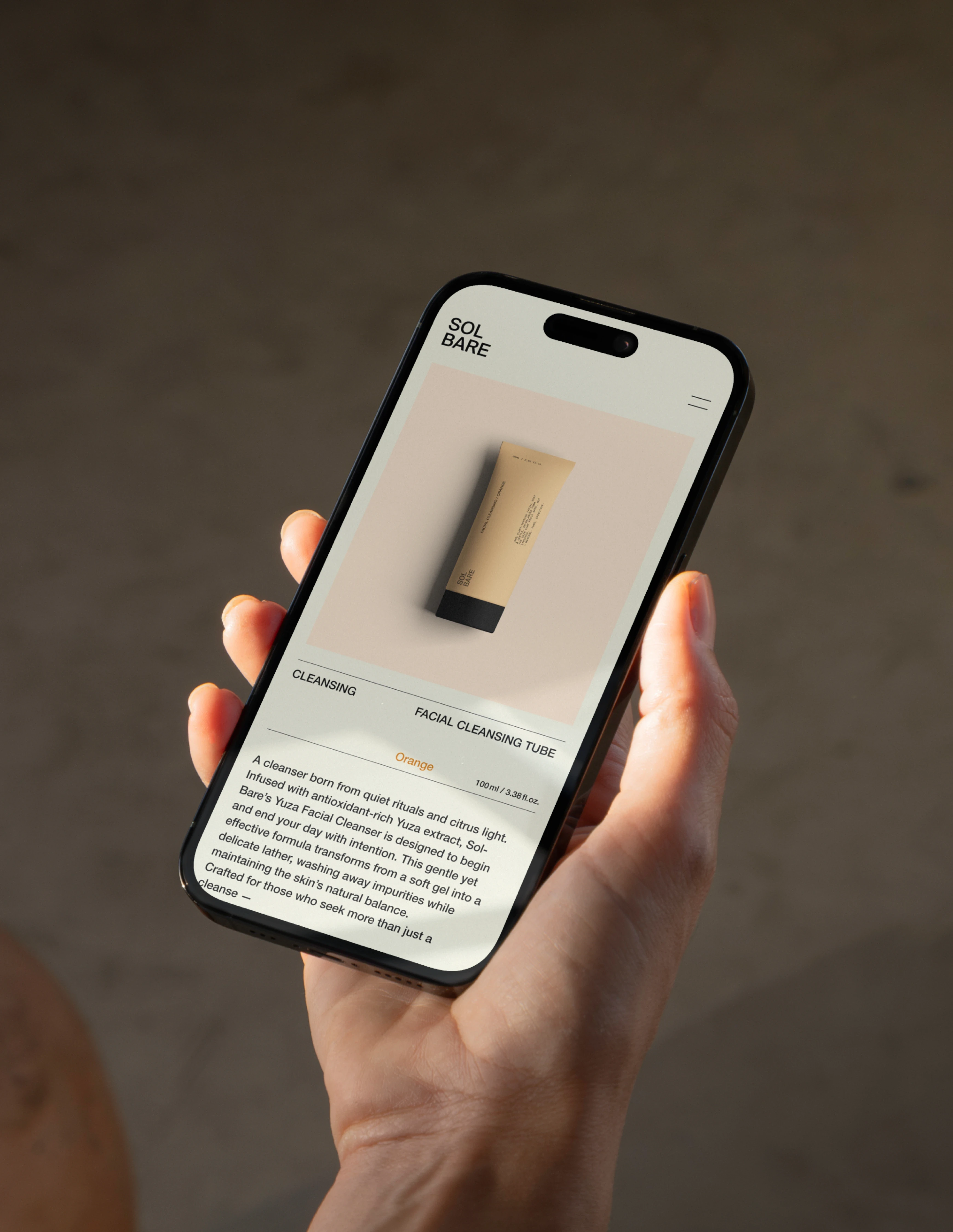 We crafted the identity and digital presence for Sol Bare, a modern skincare brand. From logo and art direction to website design, our work reflects clarity, elegance, and sensorial calm.