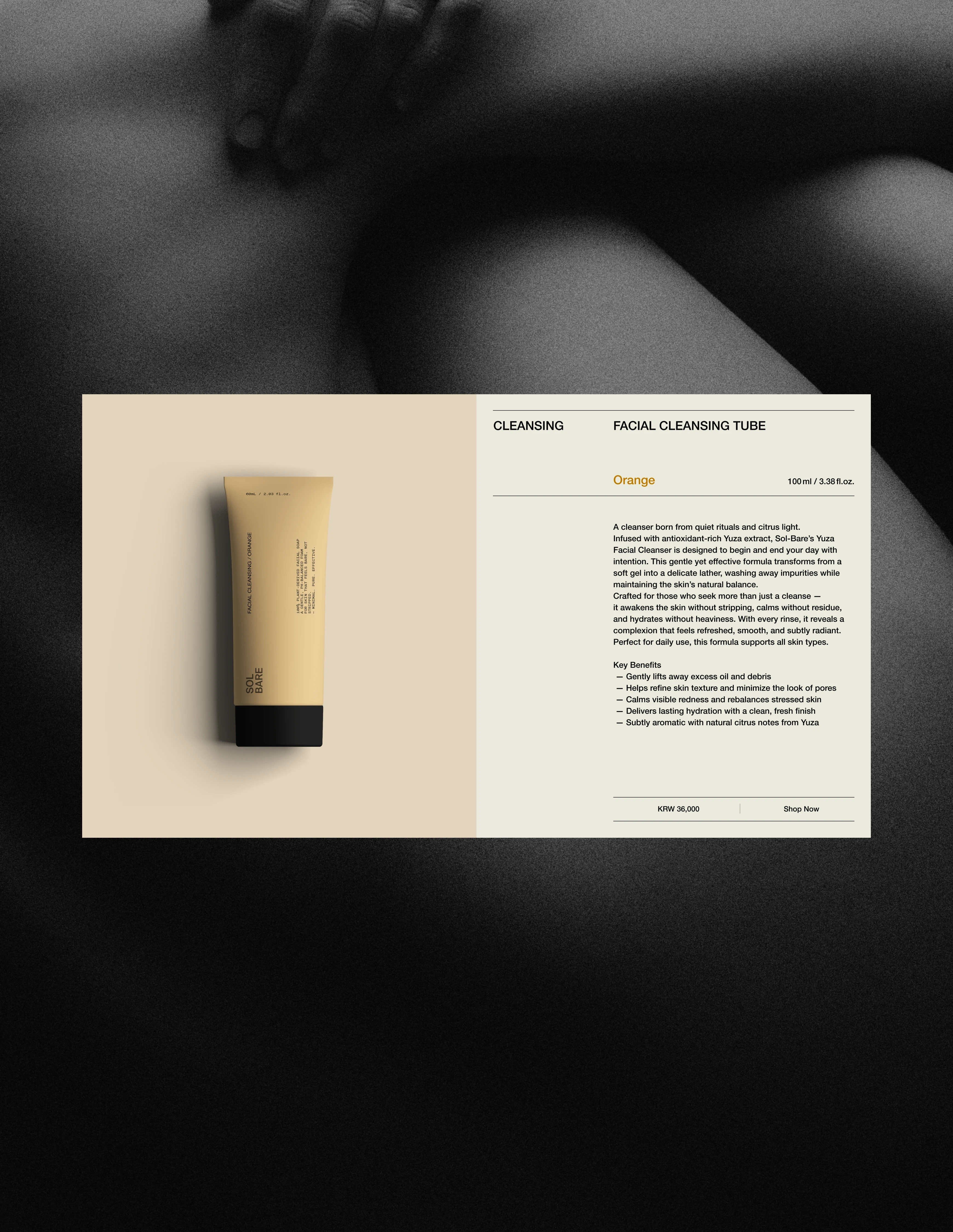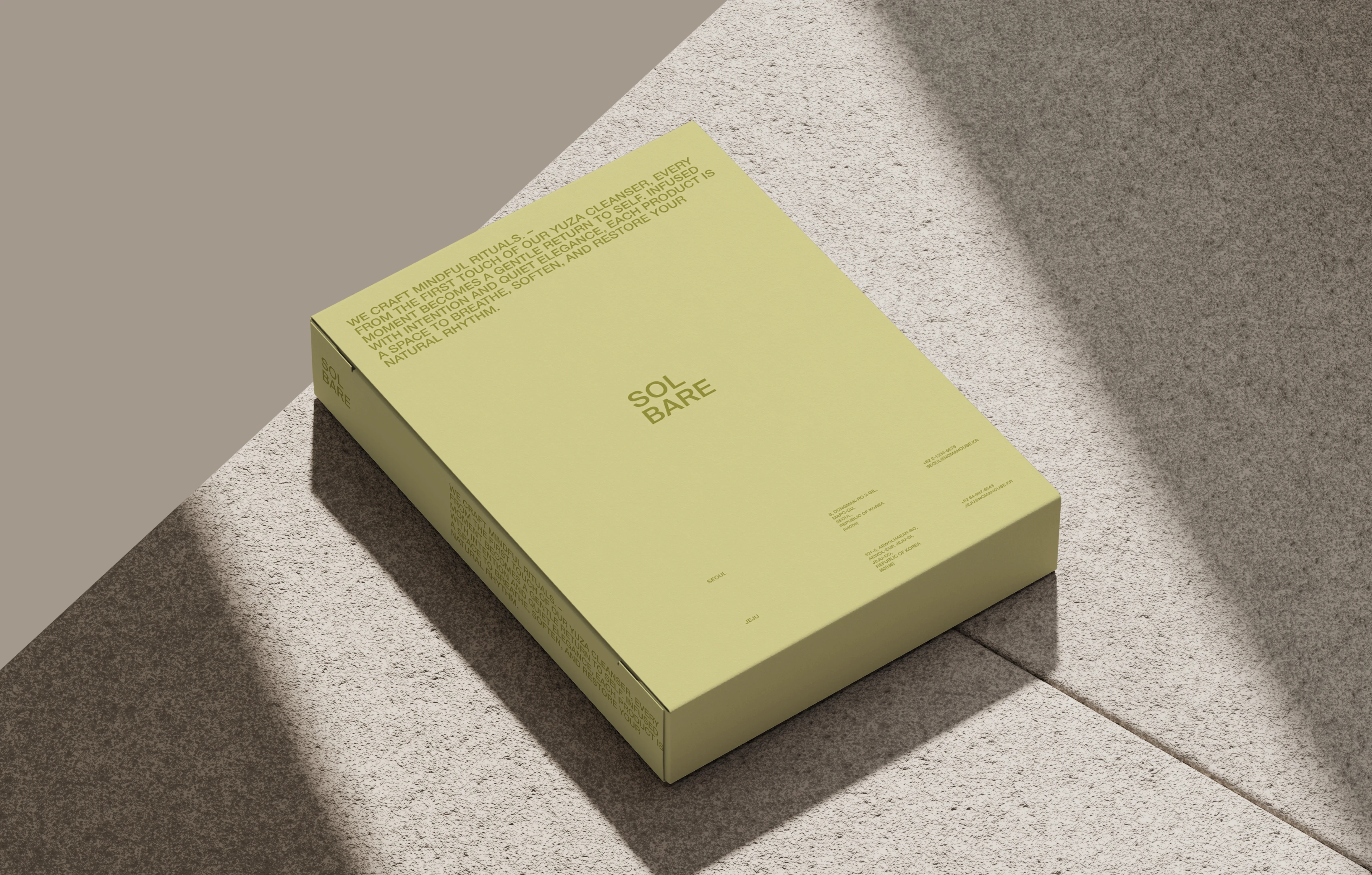 Simple, refined packaging that reflects Sol-Bare’s calm identity. Designed to feel natural and minimal, while carrying quiet sophistication.